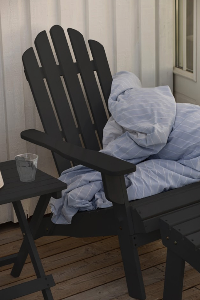 Reuse – Mobili che sono autentici vintage e quindi completamente riciclati. Ad esempio, tavoli da pranzo utilizzati in matrimoni indiani all'inizio del 1900, sedie da edifici scolastici abbandonati e affascinanti soluzioni di stoccaggio salvate dall'essere gettate. Non è stata effettuata alcuna nuova produzione.