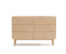Realizzato in MDF da 18 mm con impiallacciatura di rovere, il comò ha una superficie calda e accogliente che si armonizza con la maggior parte degli stili di arredamento. Dettagli come decorazioni solari e lunari sui frontali dei cassetti conferiscono al mobile un carattere giocoso ma sofisticato, perfetto per chi apprezza i mobili con un'espressione unica. Le robuste gambe in legno massello conferiscono stabilità al comò e un'eleganza senza tempo che dura nel tempo.