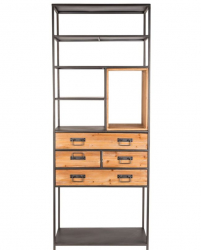 | Materiale: | Telaio in ferro verniciato a polvere grigia e maniglie. Unità aperta in abete massello. Cassetti in MDF con frontale in legno di abete |